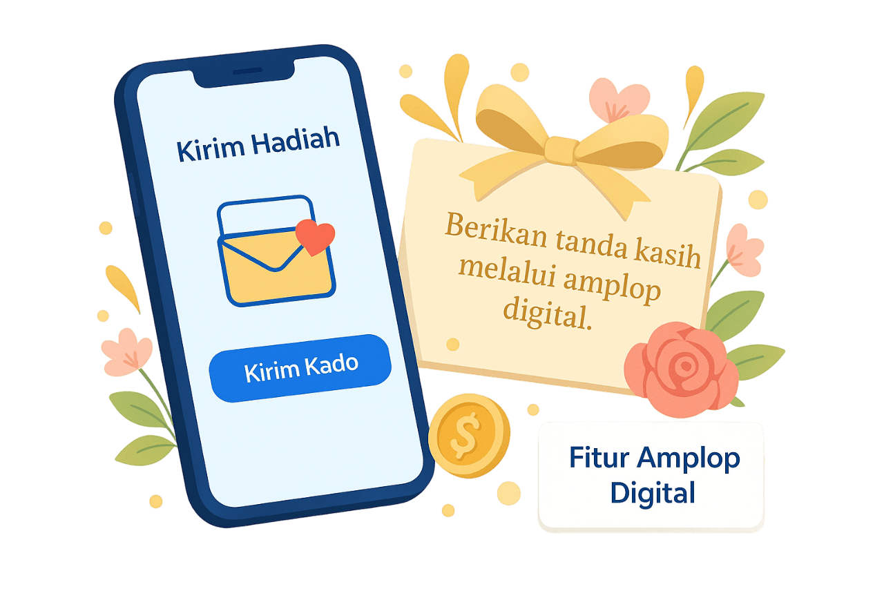 Kirimkan hadiah spesial untuk mempelai dengan melakukan transfer ke akun dompet digital ataupun kirim kado ke alamat mempelai jadi lebih mudah dan cepat.