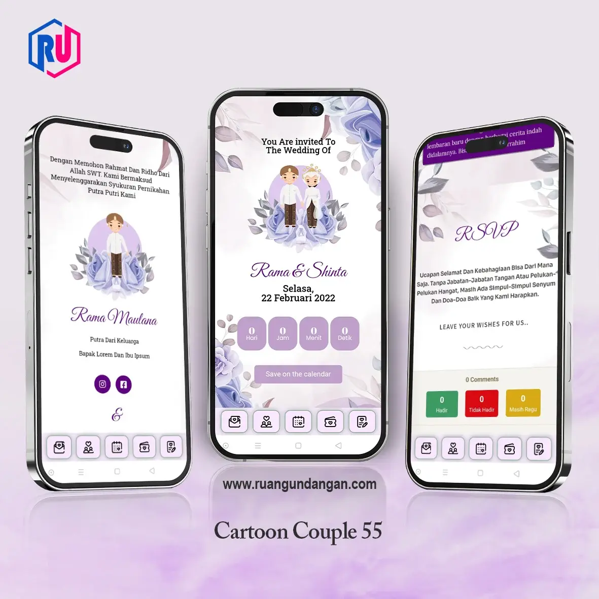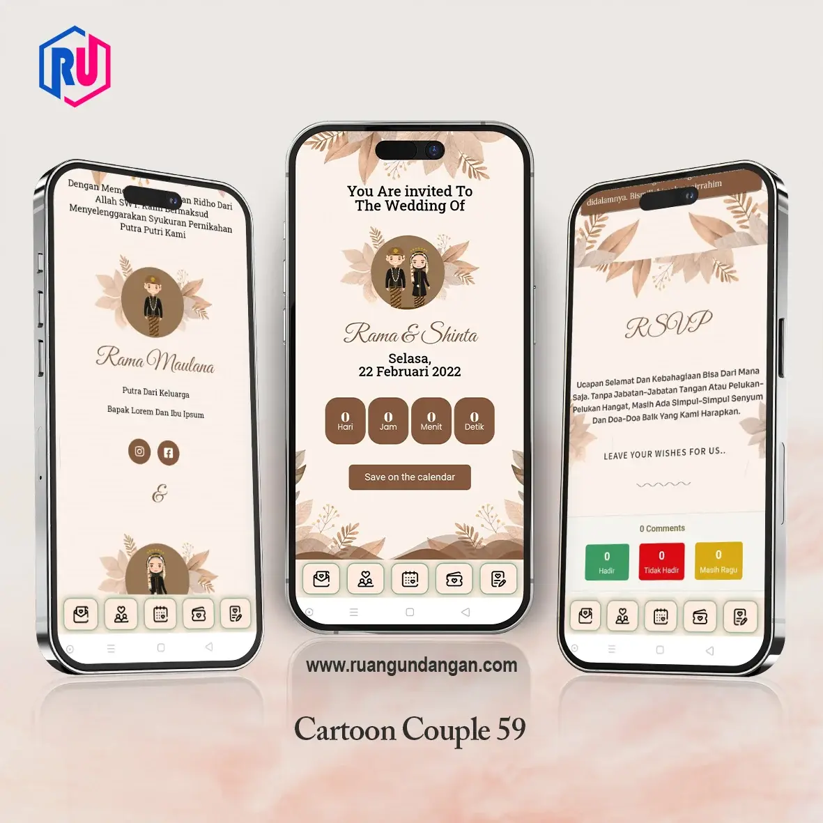 Fitur RSVP memungkinkan tamu memberikan konfirmasi kehadiran langsung dari link undangan. Selain itu, mereka juga bisa meninggalkan pesan, doa, atau ucapan spesial untuk kamu.